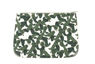 Craftsmanship, quality and tradition are at the heart of Esquivel, a brand that combines a modern aesthetic with a casual, Californian sophistication. This leather clutch features our signature banana leaf print.