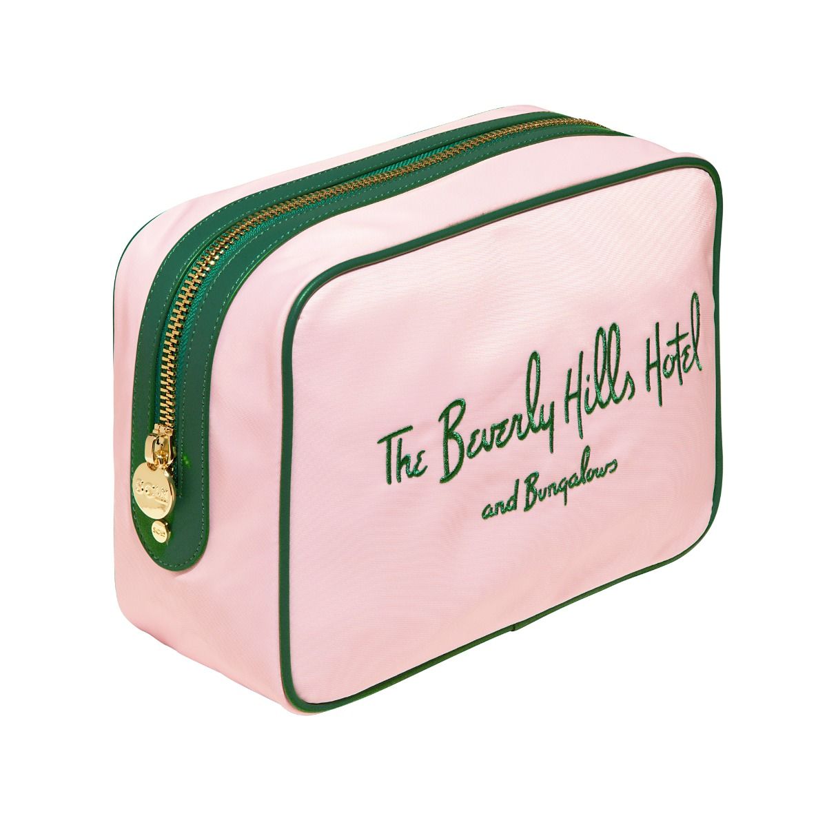 - Features: Rectangular shape, zip at top, gold-coloured metal hardware, lined, The Beverly Hills Hotel logo embroidery
