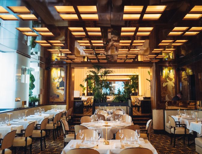 Le Relais Plaza is a Parisian institution and one of the city's last Art Deco dining rooms. Here we invite you to enjoy chef Jean Imbert's three-course menu with wine and champagne, named 'Nicole' after his grandmother.