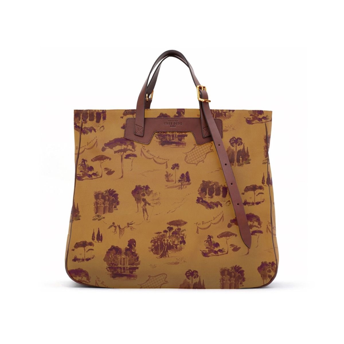 When Hotel Eden met independent brand Chez Dédé, The Roman Journey tote bag was born. This signature yellow edition of the stylish canvas bag was created exclusively for Hotel Eden, featuring a unique pattern created by Andrea Ferolla, who took his inspiration from the colours and details of Rome. Entirely and carefully made in Italy with genuine Tuscan vegetable calf leather and 100% Italian silk-screened cotton.